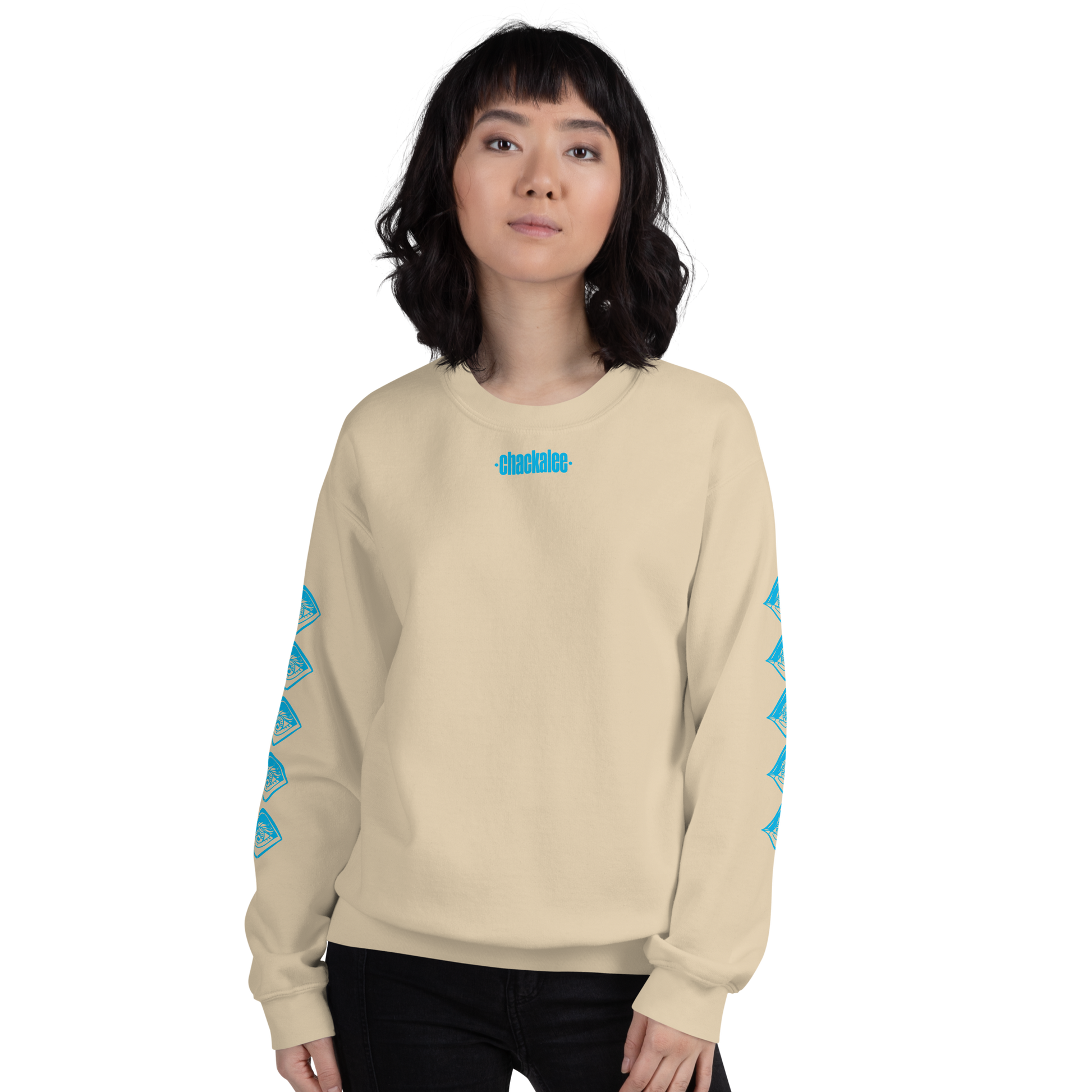 Dieses weiche Sweatshirt hält dich an kalten Tagen warm und weckt Erinnerungen an Sommertage. Kleiner chackalee Aufdruck auf der Vorderseite, Birdeye-Logo-Reihe auf beiden Ärmeln aufgedruckt und großer Druck in hellblauer Farbe auf der Rückseite.