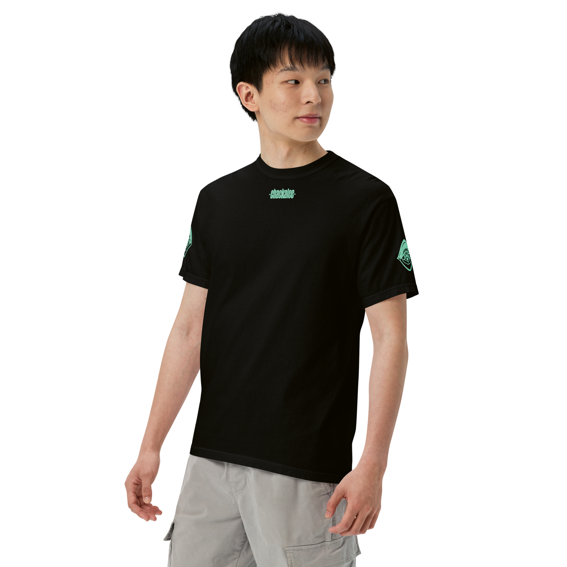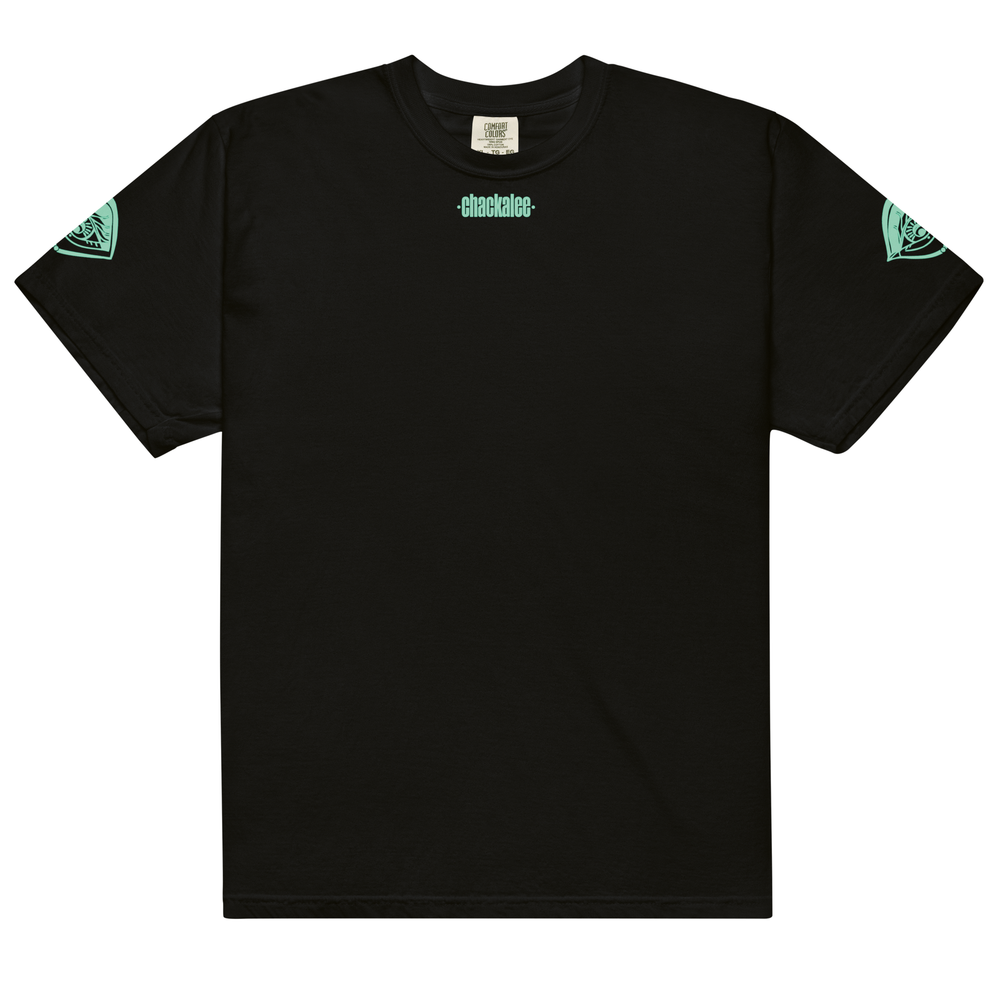 Es hat einen kleinen chackalee Aufdruck auf der Vorderseite, Birdeye-Logo-Aufdruck auf beiden Ärmeln und einen großen Aufdruck in mintgrüner Farbe auf der Rückseite.